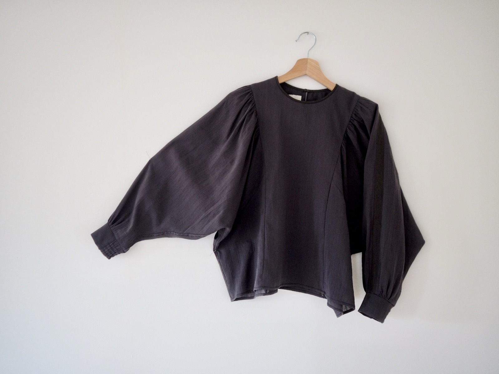 肩の切り替えを内側にする事で女性らしく 袖山のギャザーとドルマンのたるみが袖の動きを豊かに…
