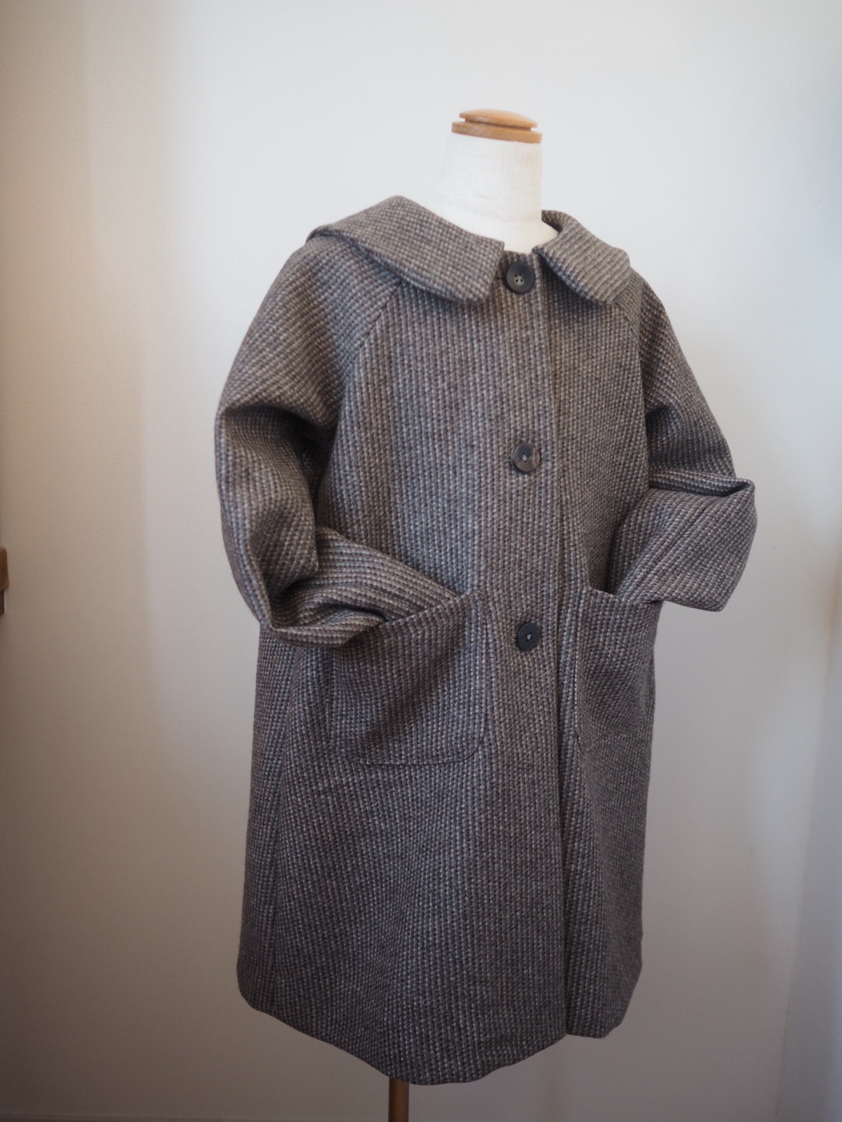 娘にセーラー衿のウールコートを作りました。 上質なアイルランド製のウールのツイード毛並みが…